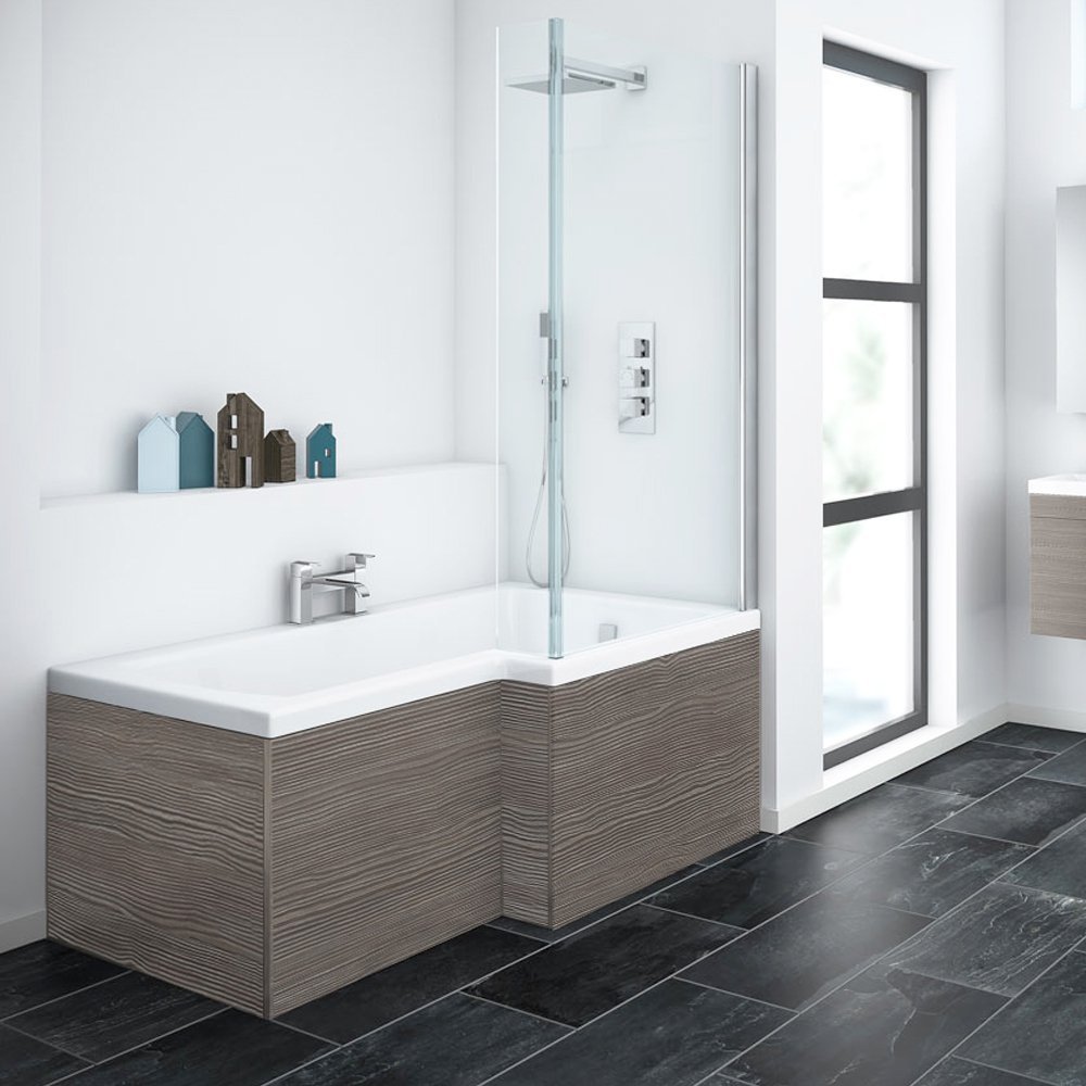 Brooklyn Grey Avola Shower Bath 1700mm L Shaped Inc Screen Panels