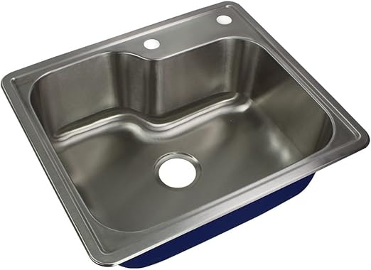 25in Dual Mount Drop In Stainless Steel 2 Hole Single Bowl
