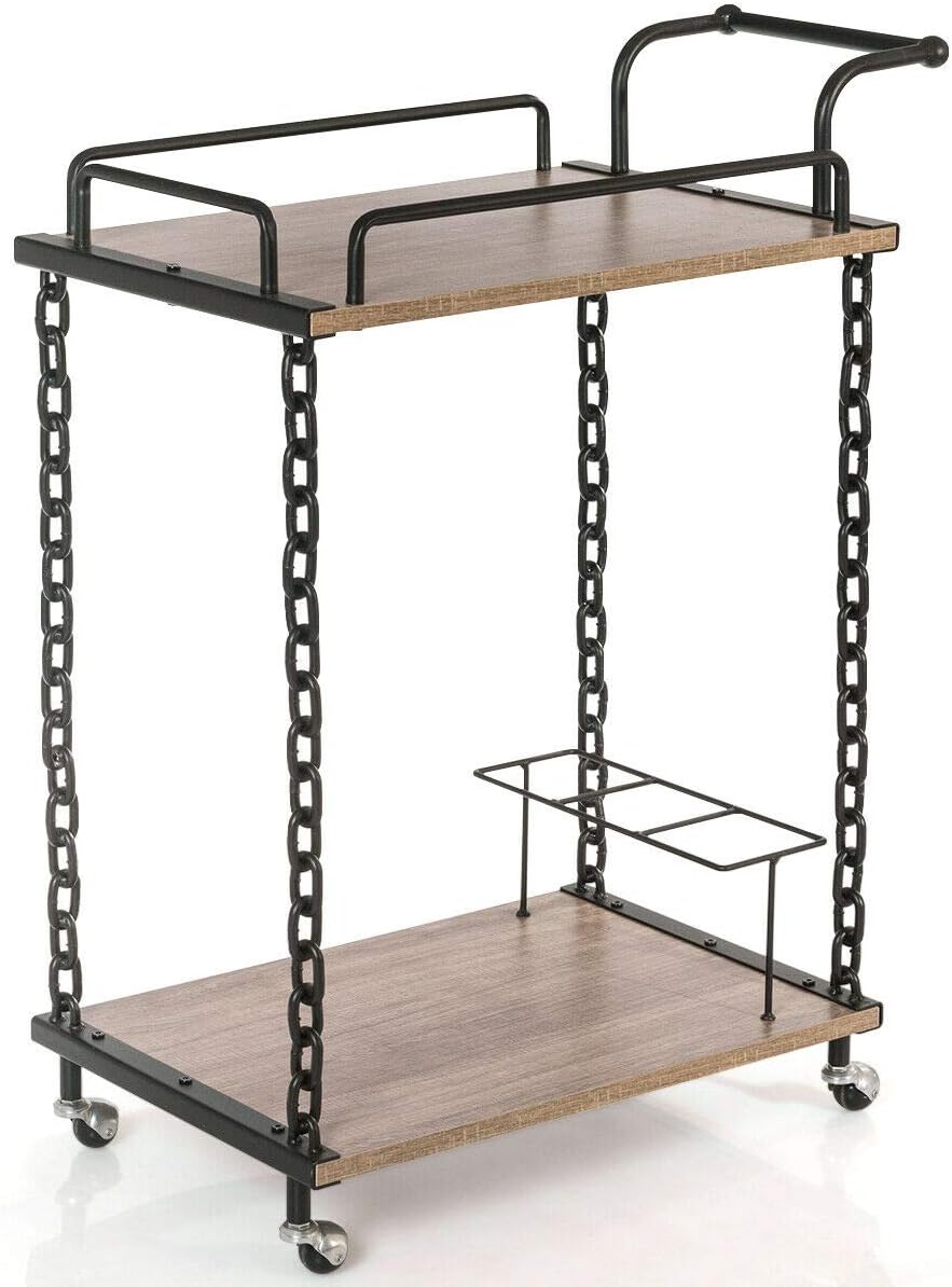 Costway 2 Tier Rolling Kitchen Bar Serving Cart Wine Trolley