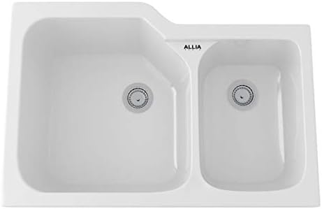 Kitchen Sink 22 Inch D X 33 Inch W X 9 Inch D White Double Bowl 9
