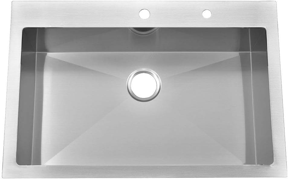 Topmount drop in single bowl kitchen sink constructed by heavy duty 16 gauge stainless steel ideal for practical kitchen use. 44 out of 5 stars 14. Kraus kp1ts33s 2 pax kitchen sink single bowl 33 inch 33 x 22 x 9 2 hole.
