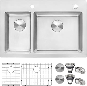 Shop 33 Inch Drop In Stainless Steel Double Bowl Kitchen Sink 33