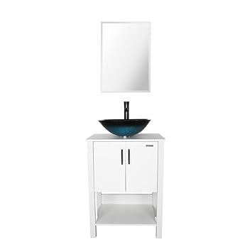 Eclife 24 bathroom vanity and sink combo white small vanity turquoise square tempered glass vessel sink 15 gpm water save faucet solid brass pop up drain with mirror a10b02w 36 out of 5 stars 31. Eclife 24 bathroom vanity sink combo brown cabinet vanity white ceramic vessel sink 15 gpm water save faucet solid brass pop up drainwmirror t03 b12c 33 out of 5 stars 15 22899 228.