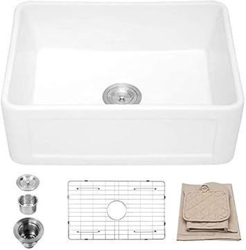 Hoooh 24 Inch Fireclay Sink Farmhouse Kitchen Sink Single Bowl