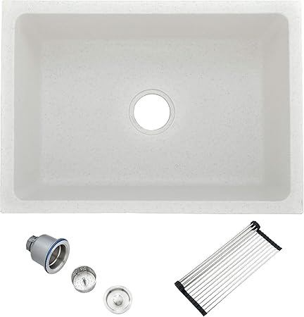 25 Drop In Undermount Granite Single Bowl Kitchen Sink In White