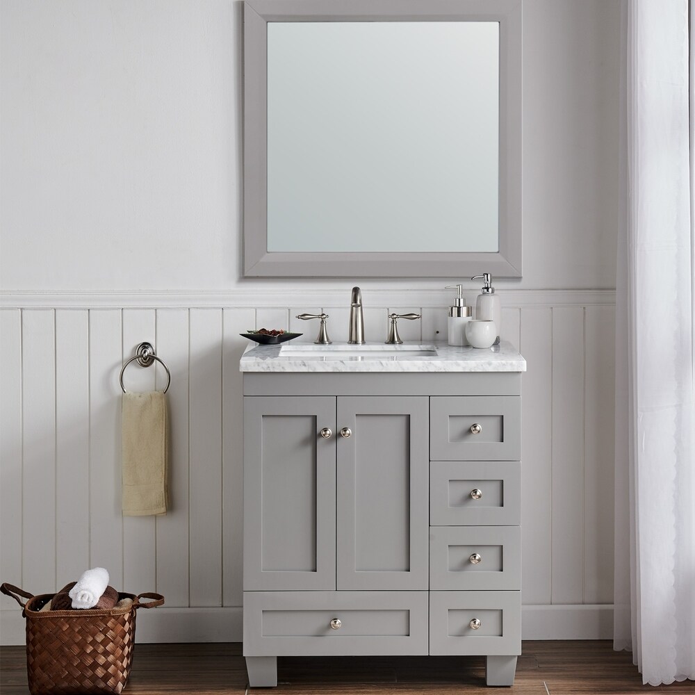 Elements Jensen Grey 28 Bathroom Vanity Cabinet White Marble