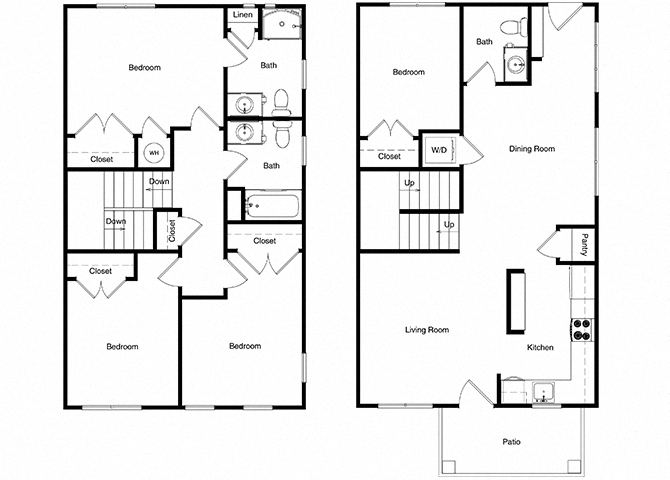 This bathroom plan can accommodate a single or double sink a full size tub or large shower and a full height linen cabinet or storage closet and it still manages to create a private corner for the toilet. These 4 bedroom 3 bathroom house designs are thoughtfully designed for families of all ages and stages and serve the family well throughout. You can find more detail on all the symbols used in these bathroom pages on the floor plan symbols page.