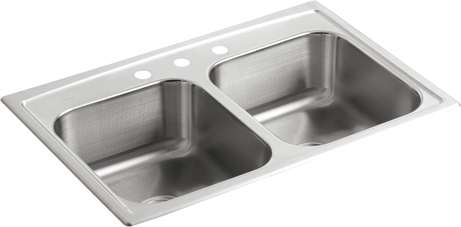Kohler K 3838 3 Na Stainless Steel Vault 33 Double Basin Top