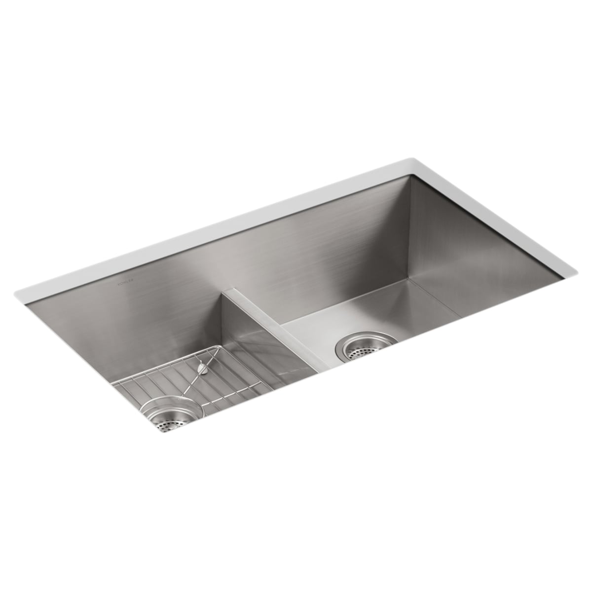 Kohler Vault Undermount Stainless Steel 33 In 3 Hole 60 40 Double