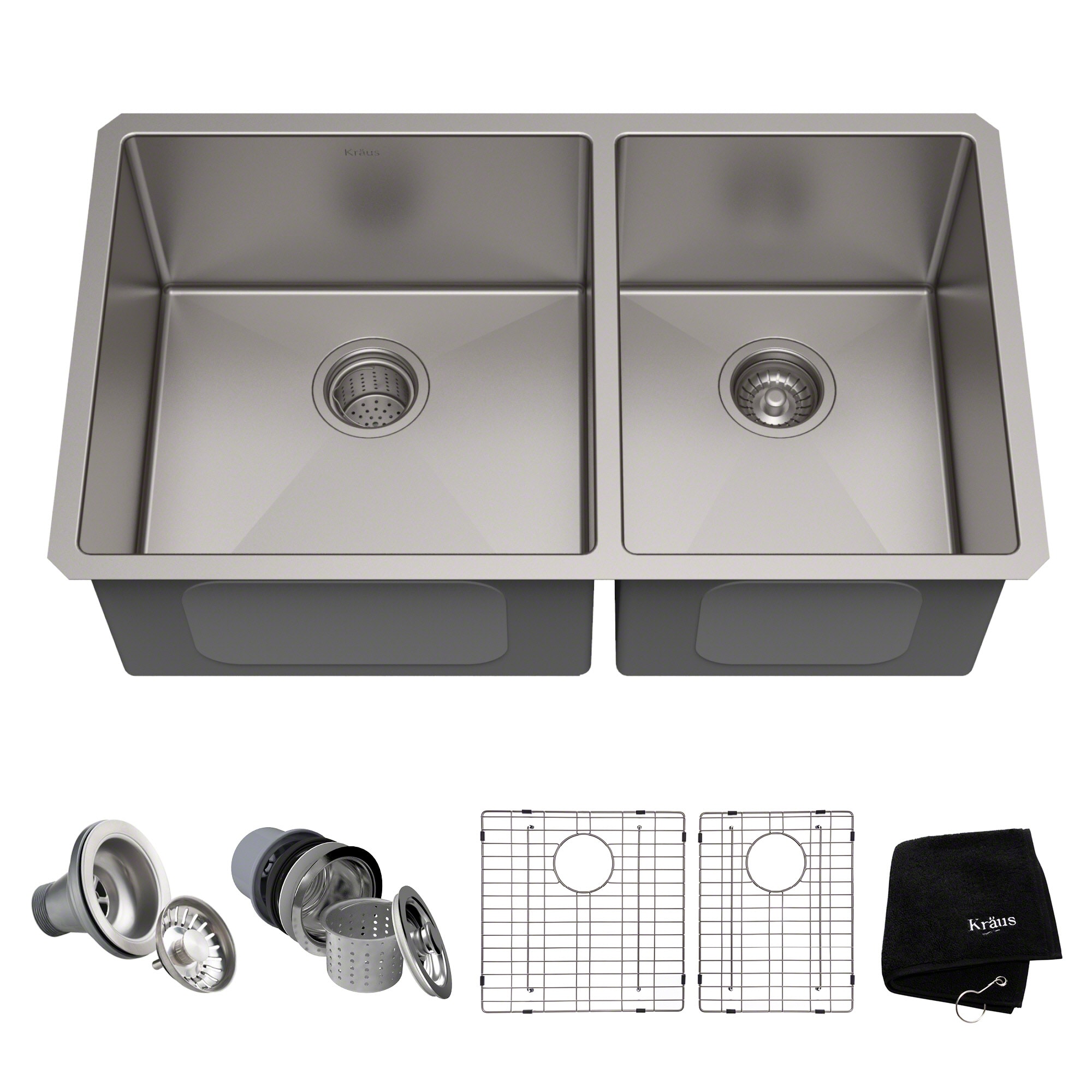 Kraus Khu103 33 Stainless Steel 32 3 4 Double Basin 16 Gauge