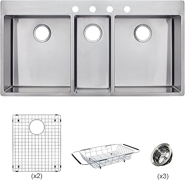 43 4 hole cast iron triple basin kitchen sink for drop in installations with 402040 split and sound dampening technology available in 3 finishes 140566 198288. 43 out of 5 stars 13. Triple kitchen sinks if youre looking for kitchen sinks for sale online wayfair has several options sure to satisfy the pickiest shopper.