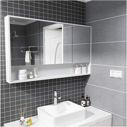 Homfa bathroom wall mirror cabinet 276 inches multipurpose storage organizer medicine cabinet space saver with 3 doors adjustable shelf kitchen cupboard white. Prestige fiji mirror cabinet 450mm wide white. Lymo 495 cm h x 58 cm surface mount bevelled mirror cabinet bathroom.