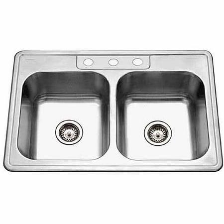 Dayton Drop Stainless Steel 25 In 3 Hole Double Bowl Kitchen Sink
