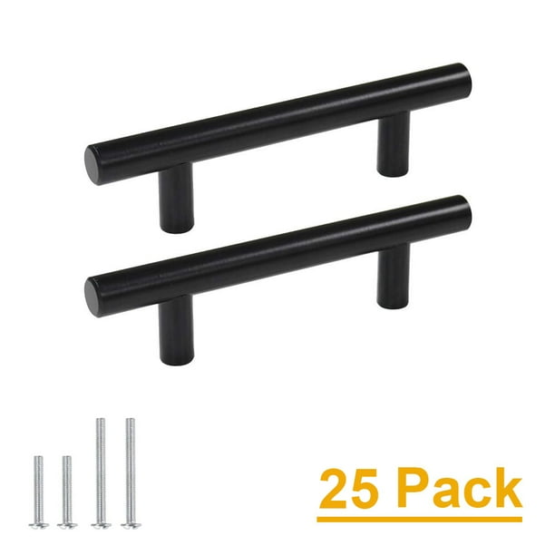 25 Pack Black Kitchen Cabinet Handles T Bar Drawer Pulls Knobs