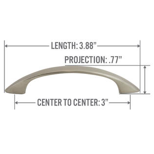 Satin Nickel Kitchen Cabinet Pulls 3 Inch Hole Center Curved