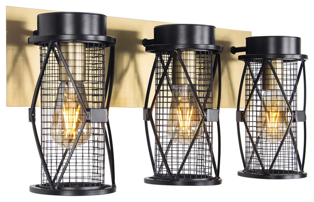 Zz Joakoah 3 Light Bathroom Vanity Light Industrial Metal Cage