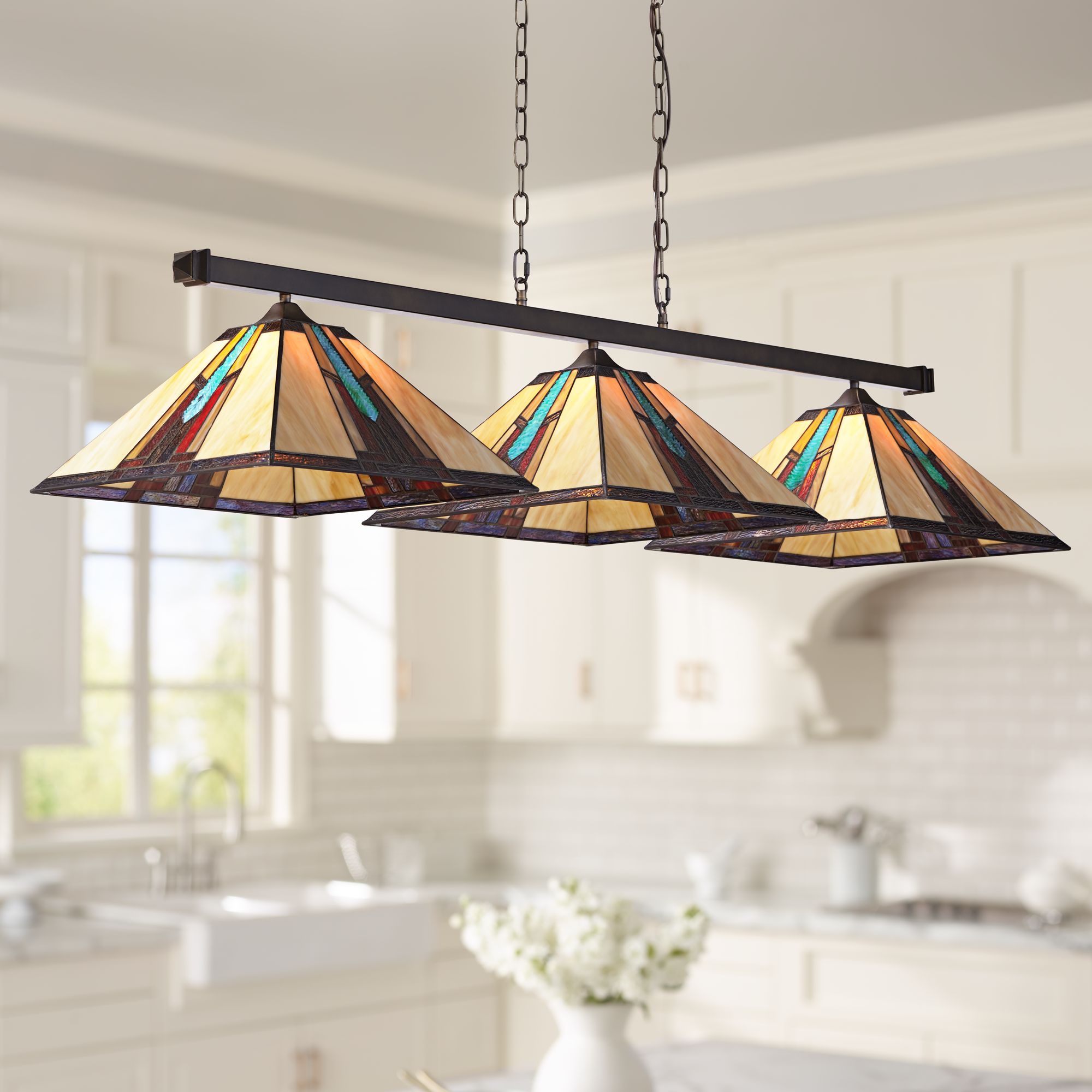 Bronze Tiffany Island Pendant Chandelier 56 Ranier Glass 3 Light