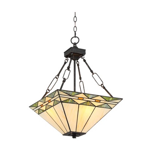 Robert Louis Tiffany Bronze Pendant Chandelier 16 Wide Mission