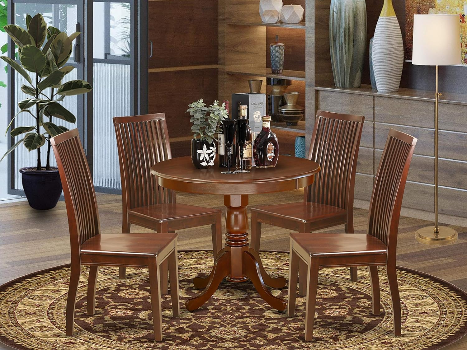 Amazon Com Anip5 Mah W 5pc Round 36 Inch Kitchen Table And 4 Wood