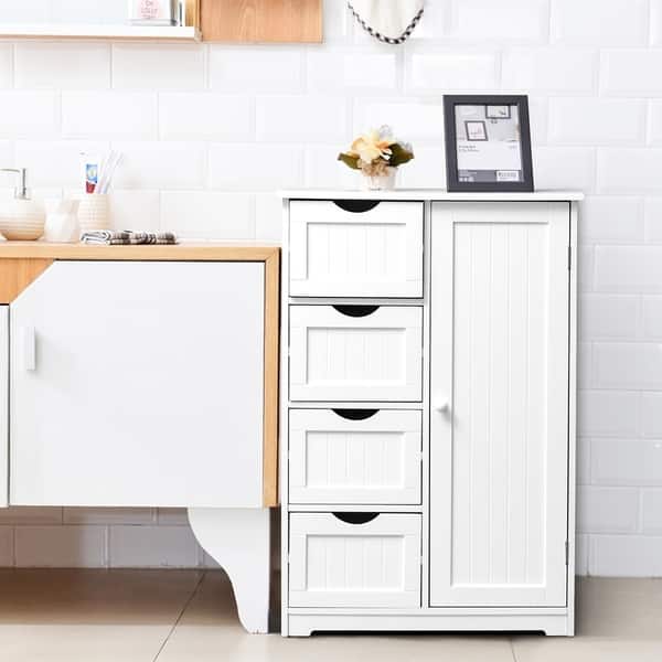 Farmhouse Bathroom Cabinet Kitchen White Floor Storage 4 Drawer