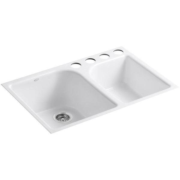 Kohler Brookfield Drop In Cast Iron 33 In 4 Hole Double Bowl