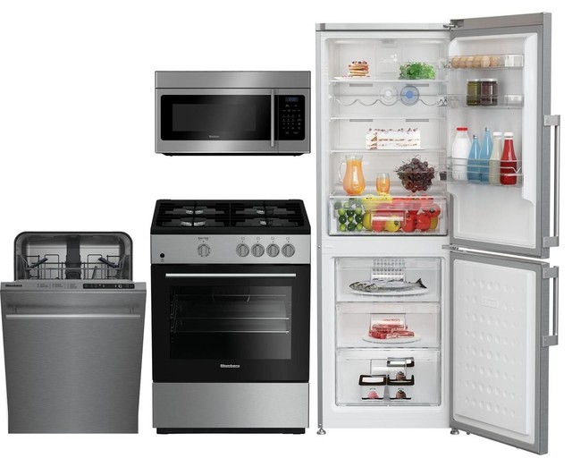 Appliance packages stainless steel 4 piece top selected products and reviews frigidaire 4 piece stainless steel kitchen package with ffss2615ts 36 side by side refrigerator ffef3054ts 30 freestanding electric range ffcd2418us 24 full console dishwasher and ffmv1645ts 30. For screen reader problems with this website please call912 729 5882 9 1 2 7 2 9 5 8 8 2 standard carrier rates apply to texts. Finding the best kitchen appliance packages with gas stove suitable for your needs isnt easy.