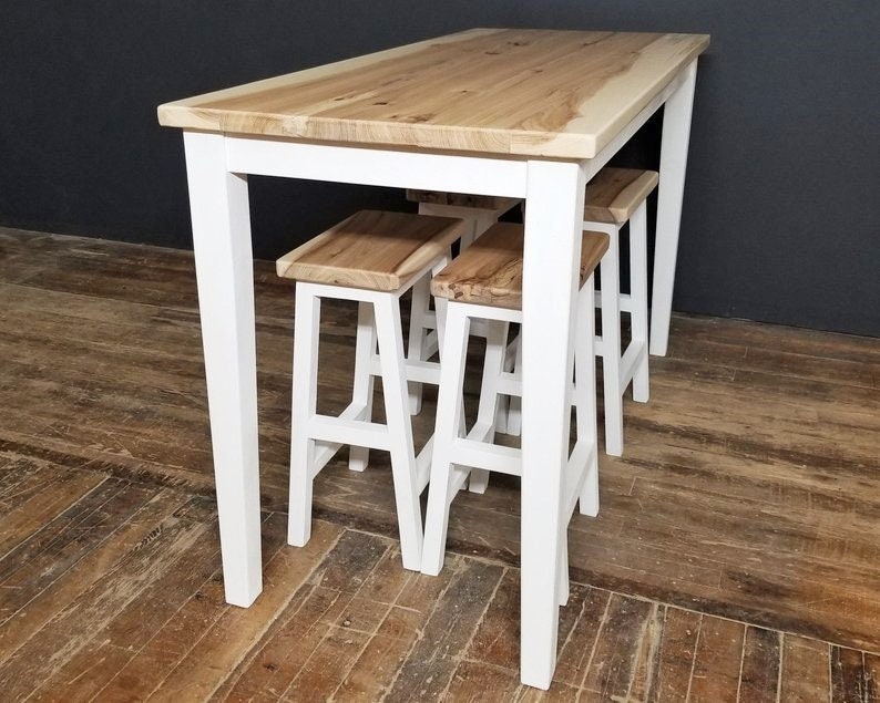 Hickory Top Table 4 Stools Island Dining Set Counter Etsy