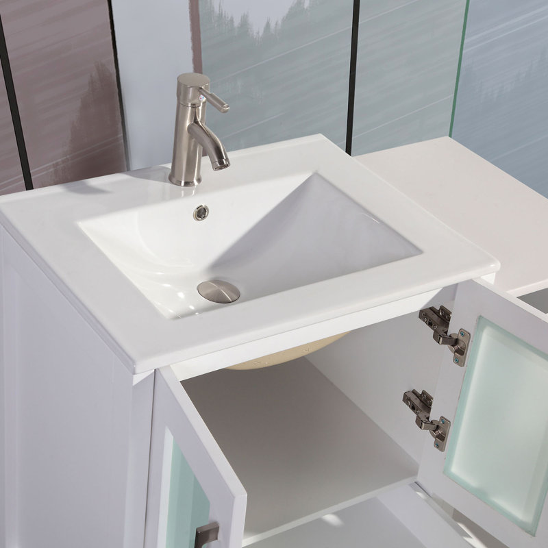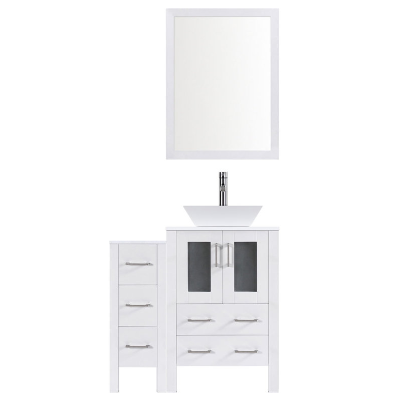 42 Bathroom Vanity Cabinet With Sink Glass Top And Mirror White