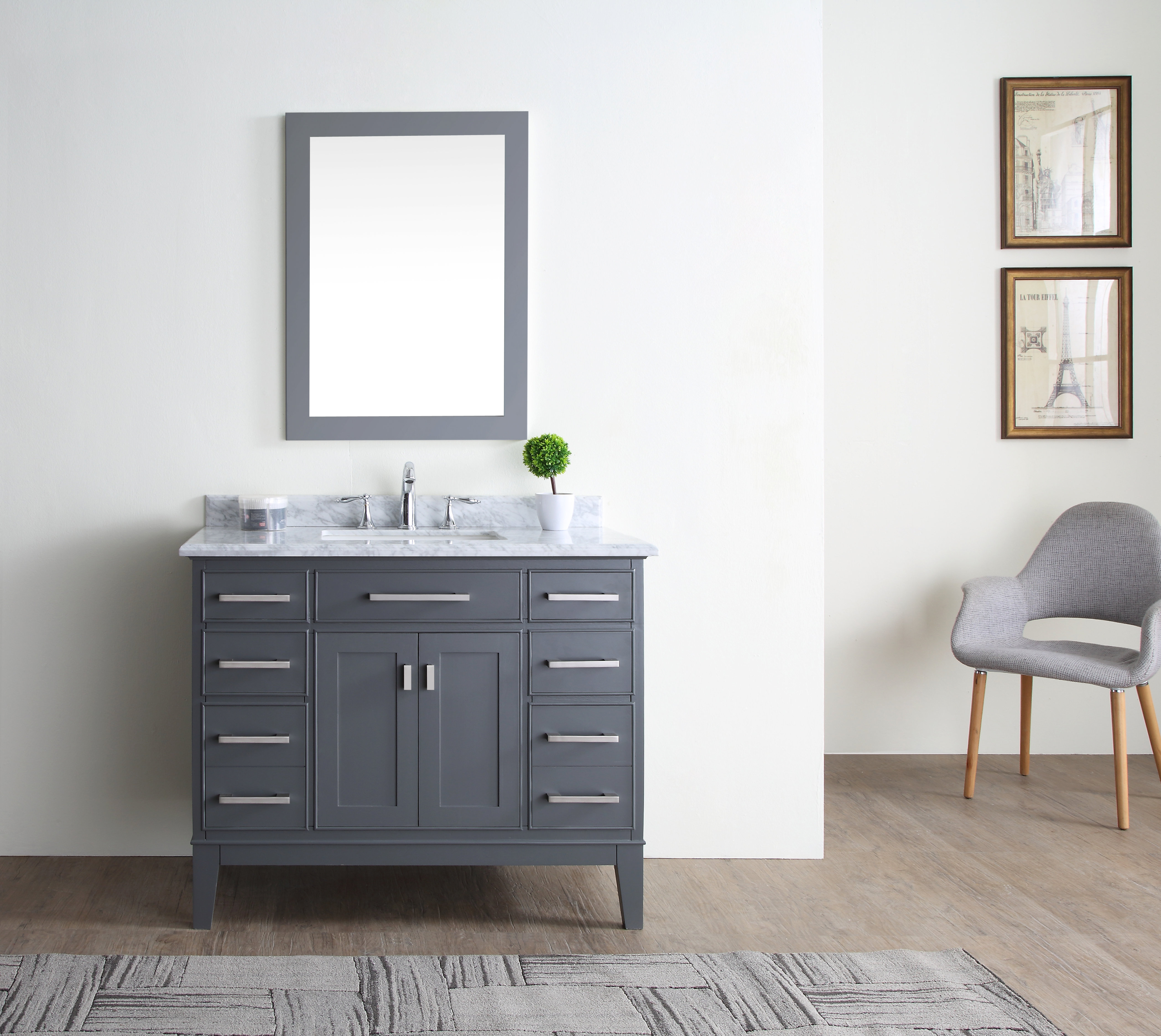 42 Inch Grey Bath Vanity With White Quartz Marble Top